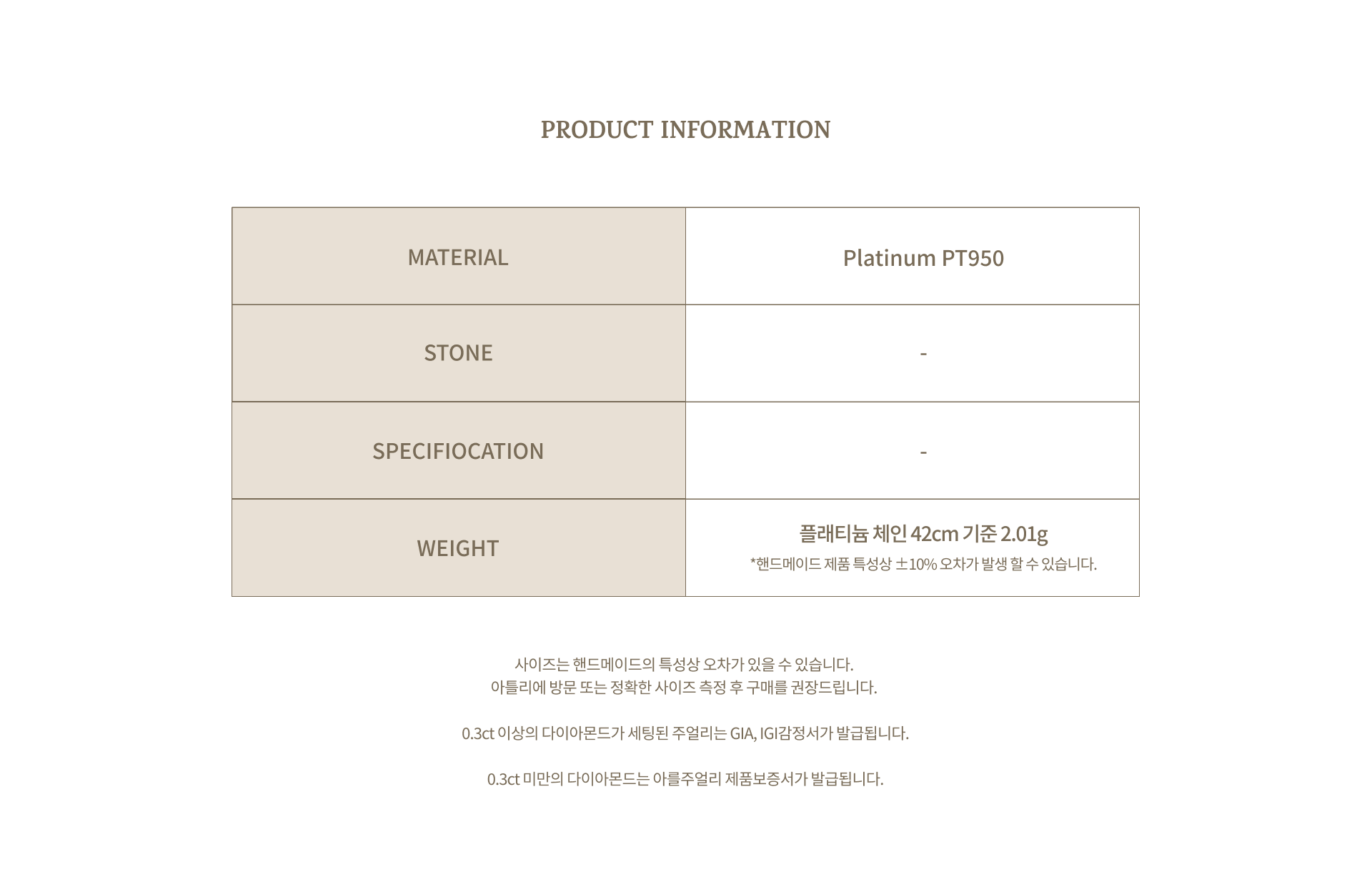 오래도록 변하지 않는 Pt950 플래티넘 소재에